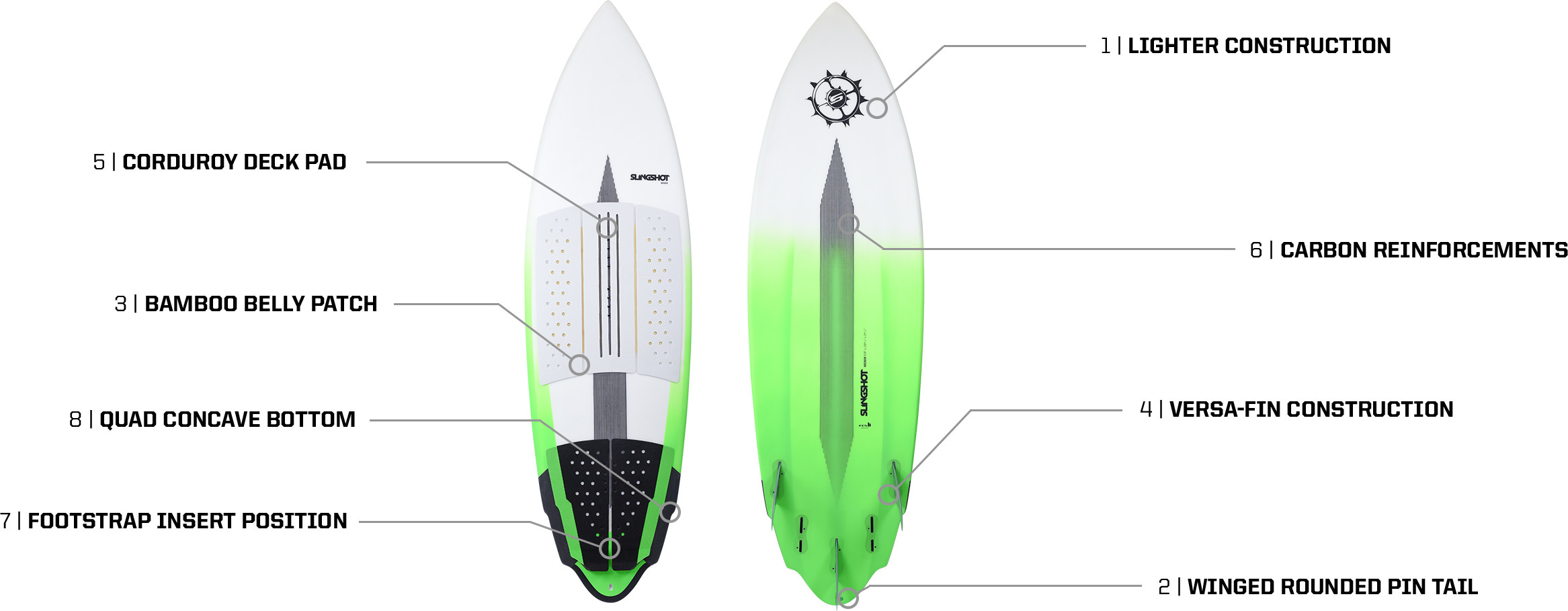 Alle 2020 Slingshot Surfboards sind im Vergleich zu Ihren Vorgängern deutlich leichter und reaktiver geworden. Außerdem sind sie mit einer Vielzahl an Innovativen Features wie z.B FCS II Fin Plugs und Carbonverstärkungen ausgestattet.