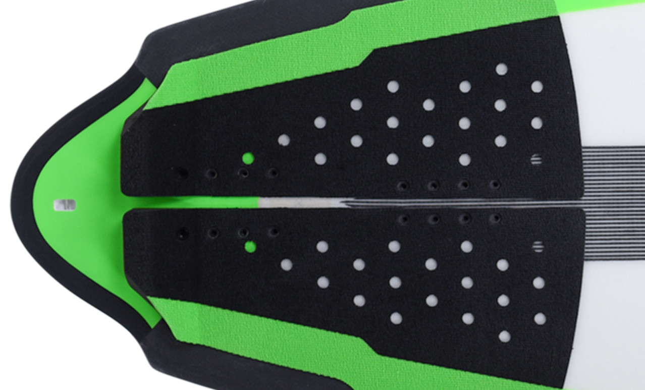 Die Position der hinteren Fußschlaufen Plugs wurden so optimiert, dass auch strapped Rider die Möglichkeit haben mit ihrem hinteren Fuß direkt über der Centerfinne am Tailkicker zu stehen. Man kann also den hinteren Fuß genau dort positionieren wo auch jeder Wellenreiter ihn gerne hat.