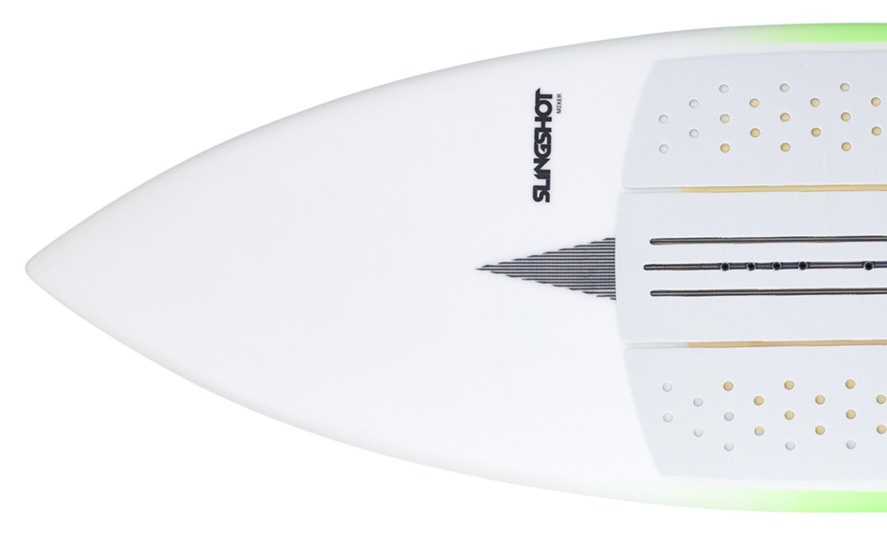 Wie bei allen 2020 Slingshot Surfboards finden sich auch am Mixer eine Vielzahl von Carbonverstärkungen. So sind Ober- und Unterseite mit einem großzügigen Carbon Stringer versehen und die Rails im hinteren Bereich mit einem 3K Carbon Layer ausgestattet.