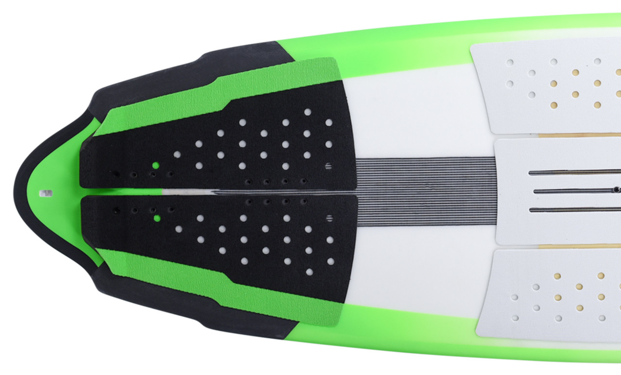 Im Bereich des vorderen Fußes sorgt eine Bamboo Holz Verstärkung dafür, dass das Deckslaminat nie den Kontakt zum Kern verliert´. Das heiß auch wenn das Board noch so harte Dellen aus deinen Surf-Sessions davon trägt wird es dort immer fest und vor allem haltbar bleiben.