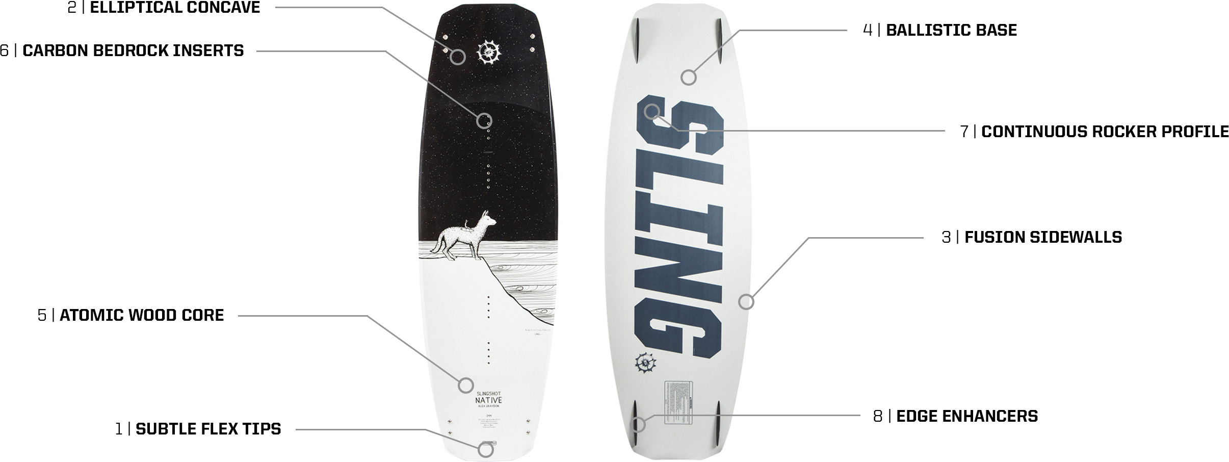 Inspiriert von einem der erfolgreichsten Boards der Slingshot-Wake-Geschichte, präsentiert sich das Native als Newcomer mit ausgeprägtem Allround-Charakter, der sowohl am Cabel als auch hinter dem Boot für deinen rundum gelungenen Adrenalinkick sorgt. Die Subtle Flex Tips garantieren in Verbindung mit der markanten elliptischen Konkave ausgeprägten Fahrspaß mit fließend dynamischen Rail-to-Rail-Transitions. Im Park schmiegt es sich runden Oberflächen förmlich an und bietet ein Höchstmaß an Kontrolle in lange gehaltenen Presses. Wenn du ein Fan der Recoil-Modelle der vergangenen Jahre warst, solltest du dieser Schnitte eine Chance geben. Sie wird dich mit Vollgas aus den Socken hauen!