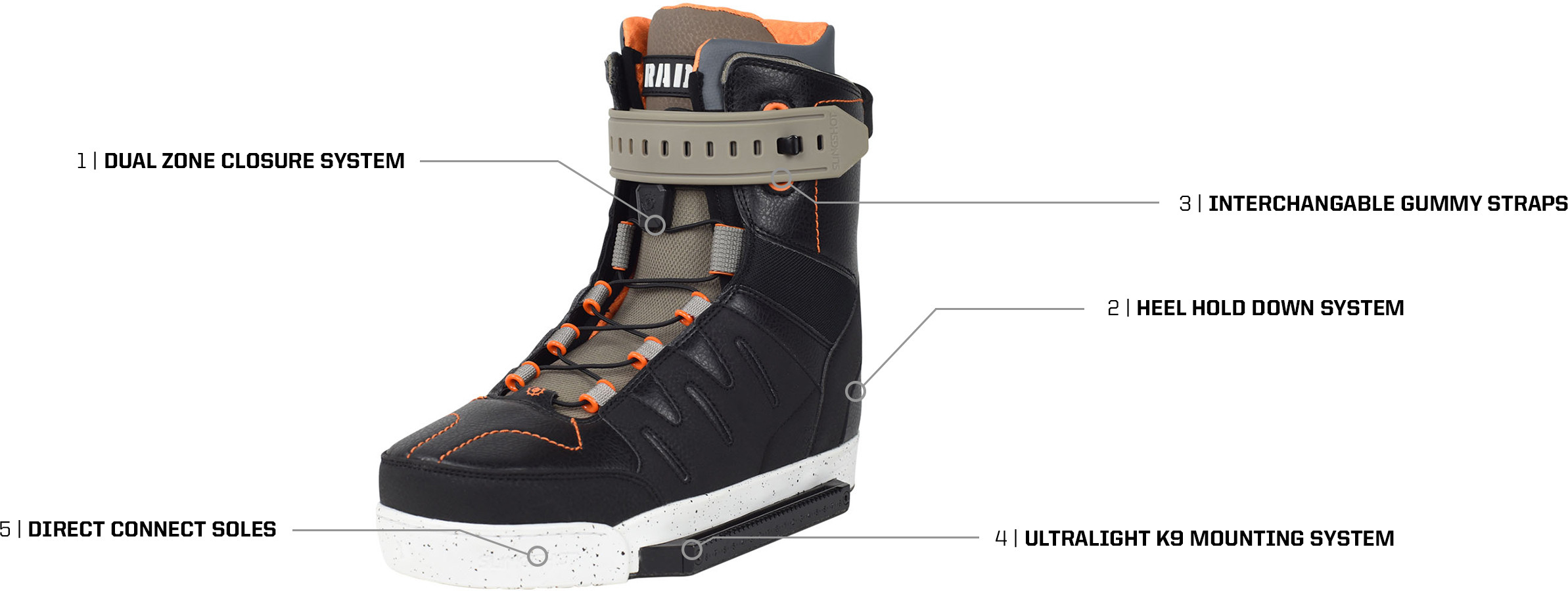 Der RAD Boot ist ein Allrounder wie aus dem Bilderbuch. Er verkörpert die goldene Mitte hinsichtlich Flex und Support, womit die Ansprüche von vielseitigen Wakeboardern bestens erfüllt werden. Ganz egal, ob die Vorlieben zu Boot oder Cable tendieren. Über die Jahre ist dieser Boot immer leichter geworden, hat ein flacheres Profil bekommen und die Performance-Werte sind durch die Decke geschossen. Nicht ohne Grund ist er heute unser Flagship-Boot, der mit seinem vielseitigen Charakter und ausgereiften technischen Details wie dem Dual-Zone-Closure-System, der Direct Base und last but not least seinem eleganten Auftritt Wakeboarder rund um den Globus begeistert.