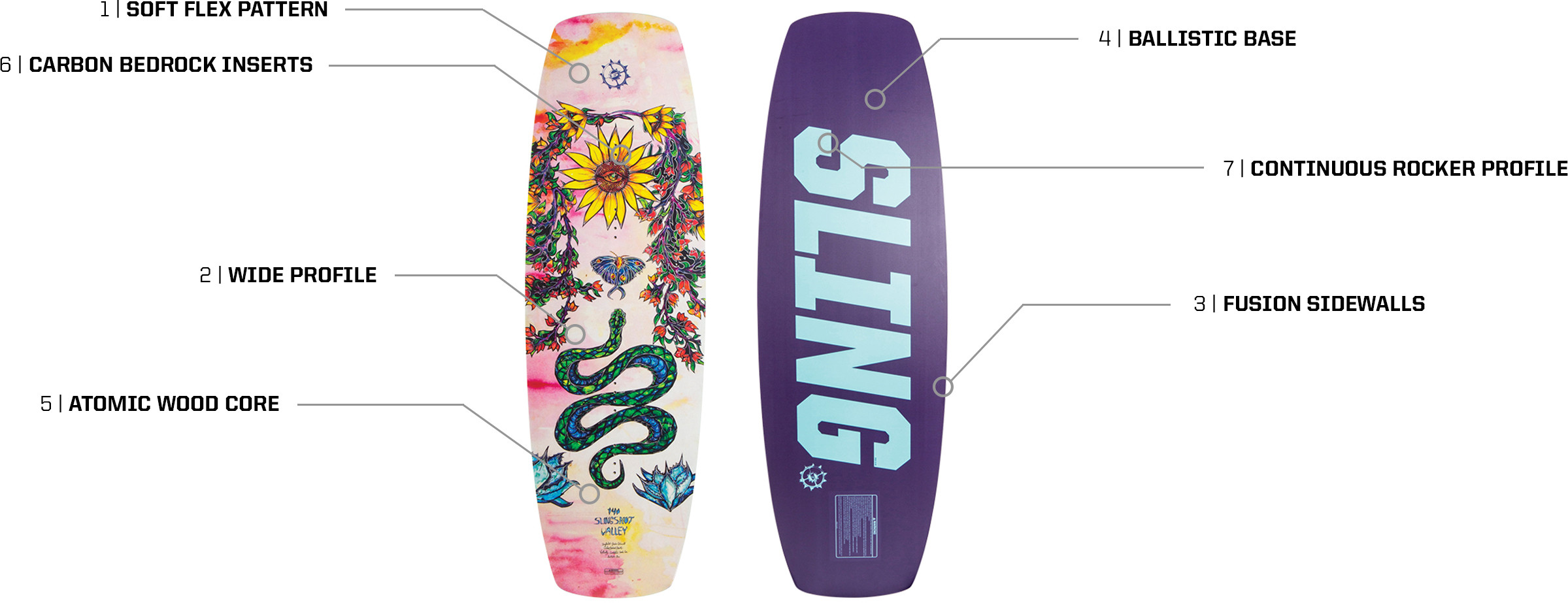 Konsequent auf Rails fokussiert, verkörpert dieses Board das an Wakeboarderinnen gerichtete Pendant zum Terrain. Buttersofte Slides und Presses gehören durch die weiche Flexgestaltung zu den Spezialitäten des Valley. Unebenheiten bügelt dieses Board einfach flach, ob auf dem Wasser oder auf Obstacles. Der perfekte Partner für Wakeboarderinnen die überwiegend im Park shredden und deren Herz für Rails jeder Art schlägt.