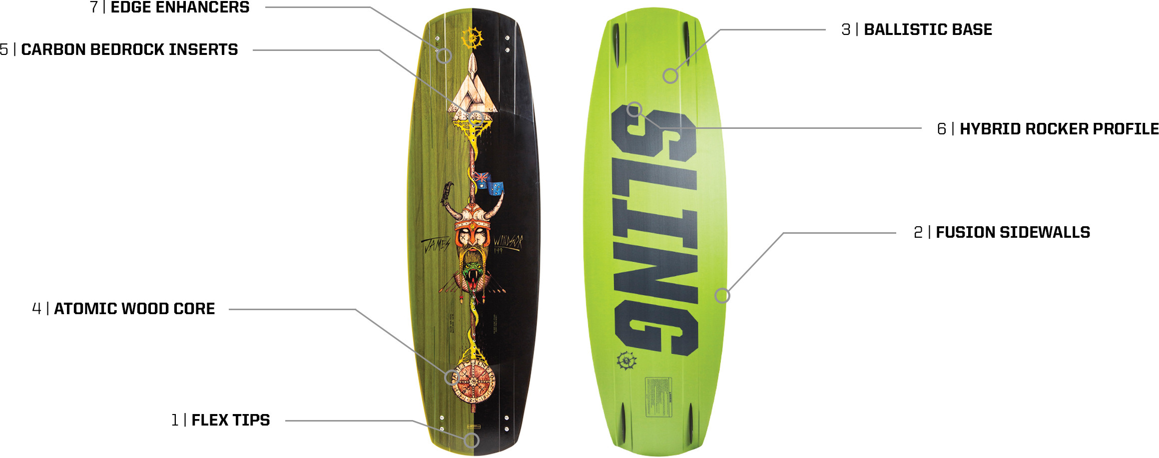 Wir haben dieses Board an den Füßen von James Windsor um die ganze Welt geschickt – und zwar nicht nur ein mal – da er der erfahrenste Wakeboarder in der gesamten Slingshot-Family ist. James benutzt und misshandelt das Windsor aufs Gröbste, während wir damit beschäftigt sind es seinen Anregungen folgend zu verbessern. So ist das Windsor heute das am ausgiebigsten getestete und wahrhaftigste Board des Lineups. Channels im Tipbereich sorgen für maximalen Halt beim Aufladen für Air Tricks, während die Flex Tips gemeinsam mit dem Medium-Soft-Flex für das sagenhaft spielerische Fahrgefühl auf Rails verantwortlich sind. Vertraue auf Erfahrung! Wie ein guter Whiskey hat auch das Windsor über die Jahre hinweg seine Perfektion erreicht!
