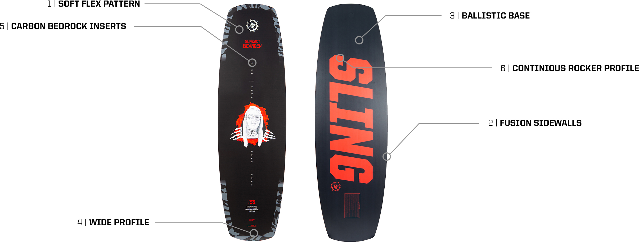 Das 152er Bearden ist dem 152er Terrain sehr ähnlich, bis auf einen ganz entscheidenden Unterschied. Denn wir haben den magischen Gras-Slide-Staub der letzten Sessions von Crosse in filigraner Feinarbeit aufgefangen, gefiltert und konserviert, um ihn vor dem Laminierungsprozess über dem Kern dieses Boards zu verstreuen. Das Resultat: Magische Motivation und exorbitanter Mut, um mit einem Olli bs 270 in einen präzisen Butterslide auf die nächste Wiese auszubrechen. Fun Fact: Crosse Bearden war der erste Slingshot-Teamfahrer, der 2012 mit unserem Super-Grom-Board im Park aufs Ganze ging. Heute, gute acht Jahre später gehört er zu den besten Wakeboardern der Welt. Für uns Grund genug, ihm sein eigenes Pro-Model zu widmen.