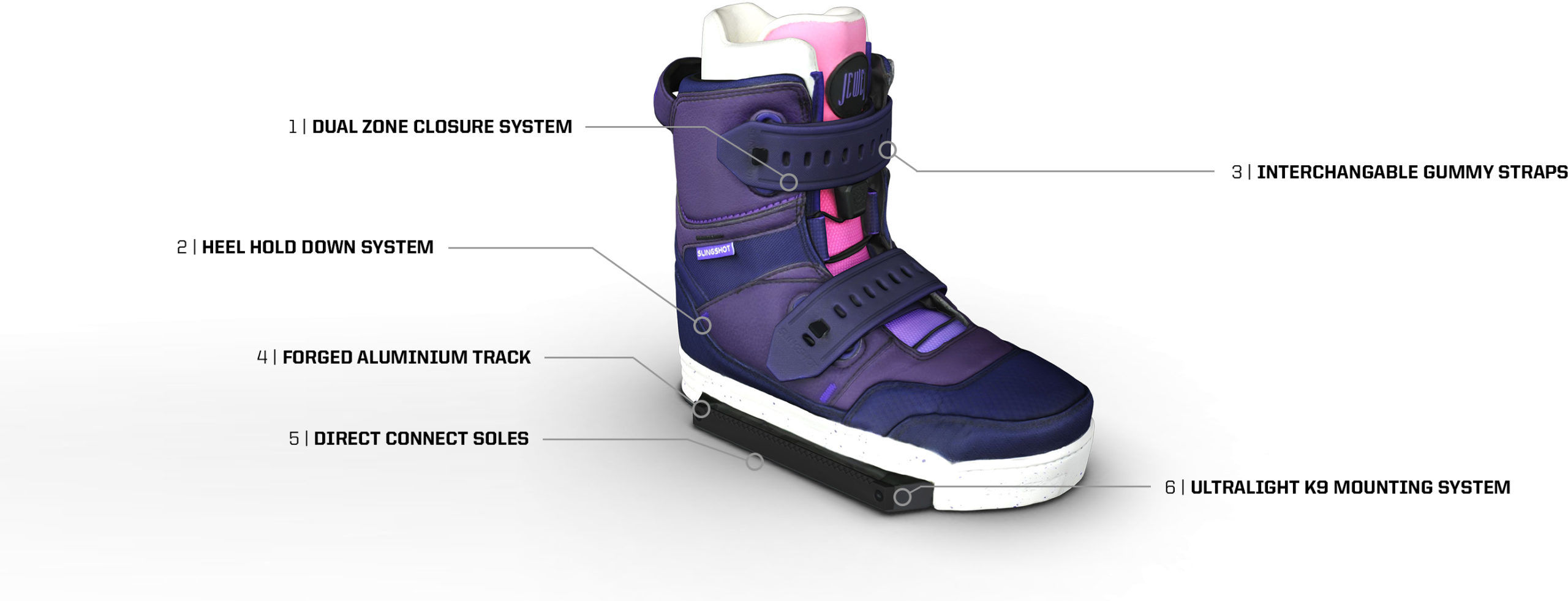 In die neuen Jewel-Boots hineinzuschlüpfen, fühlt sich in etwa an, wie jeden Tag ein brandneues Paar Kuschelsocken zu tragen. Mit dem Unterschied, dass du mit den Jewel deutlich höher springen kannst. Durch die Kombination aus Schnürung und Gummy-Straps stellen diese Boots eine vollendete Komposition aus Komfort, Performance und Funktionalität dar, die wie im Sturm Herzen von Wakeboarderinnen rund um den Globus erobert hat. Dieser Erfolgskurs wird jetzt konsequent fortgesetzt, denn ab der Saison 2021 ist der Jewel-Boot zusätzlich mit dem Lower-Zone-Gummy-Strap ausgestattet, der die im Spannbereich bereits vorhandene Schnürung perfekt ergänzt. Eine bessere Passform hat es noch nicht gegeben!