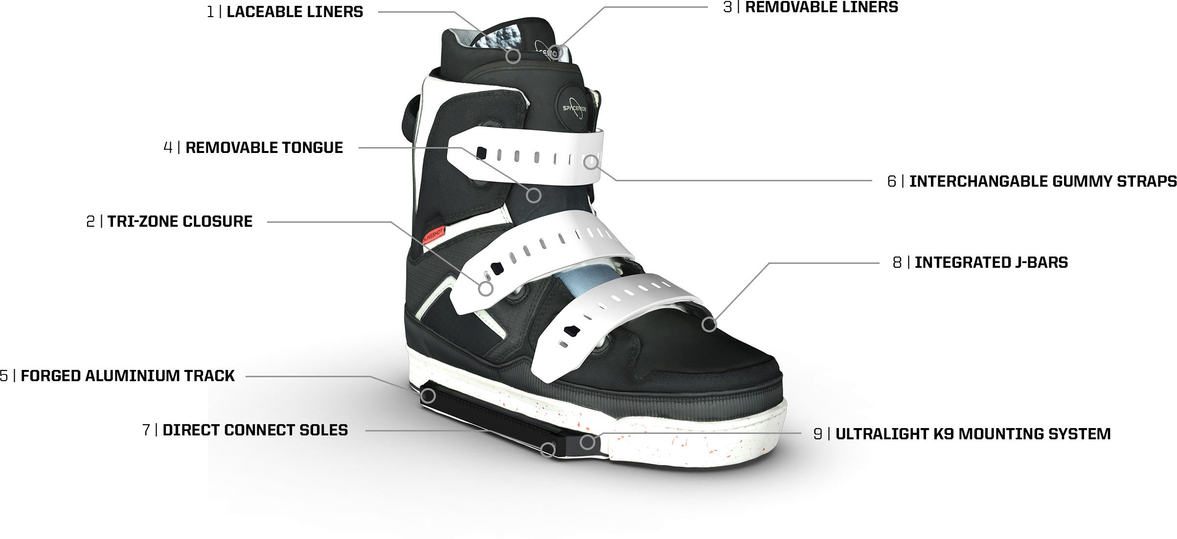 Mit der Verwendung einer hochgradig robusten, traditionellen Schuhschnürung haben wir uns bei diesem Boot nicht nur selbst übertroffen, sondern auch eine Anpassbarkeit an den Fuß des Fahrers geschaffen, die ihresgleichen sucht. Da Wakeboarder den größten Teil des Tages damit verbringen, ihren Innenschuh abzurocken, wollten wir ein idiotensicheres Verschlusssystem entwerfen, das weder kompliziert ist, noch im Weg herumbaumelt. Und hier ist es!