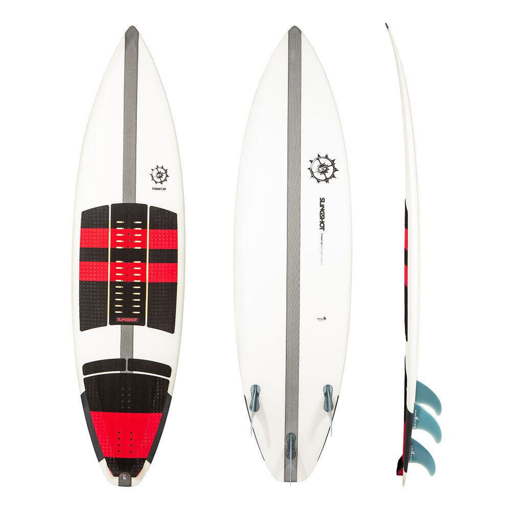 Entwickelt für Wavekiter, die in mittleren bis großen Wellen ein Maximum an Kontrolle von ihrem Board erwarten. Der klassische, schmale Shortboard-Shape mit seiner geraden Outline und dem filigranen Rounded-Squash-Tail verleiht dem Tyrant XR eine Kontrolle in lang gezogenen Bottom-Turns, die metaphorisch mit der Präzision eines Skalpells verglichen werden kann. Gleichzeitig ermöglicht das Thruster-Set-Up ein spielerisches, freies Feeling in Cutbacks, das Raum zum Experimentieren lässt.