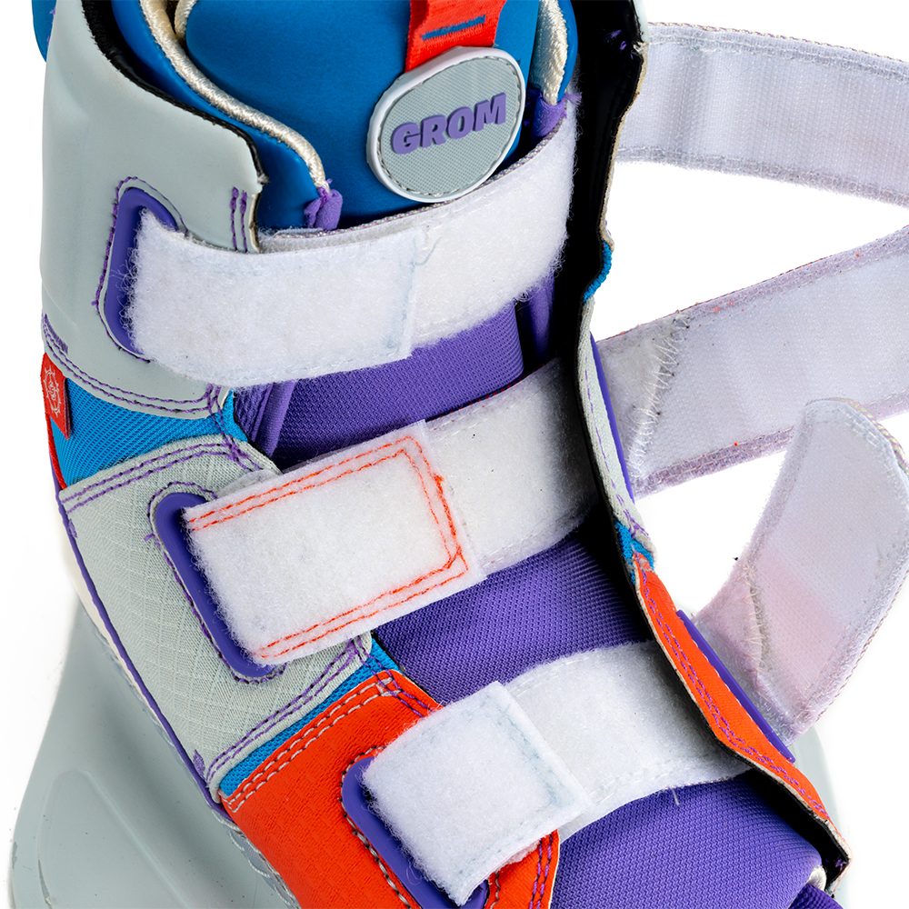 Die Grom-Boots verbinden High-End-Design mit perfekter Funktionalität für Einsteiger bis Fortgeschrittene und einem sensationellen Preis-Leistungsverhältnis. Zudem können sie dank des Open-Toe-Konzepts von mehreren Fahrern geteilt werden, die eine ähnliche Schuhgröße haben. Die Bottomless-Baseplate bietet jungen Rippern ein herausragendes Gefühl für ihr Board, während die aus einer 3D-Mold kommende Lasche höchsten Tragekomfort garantiert.