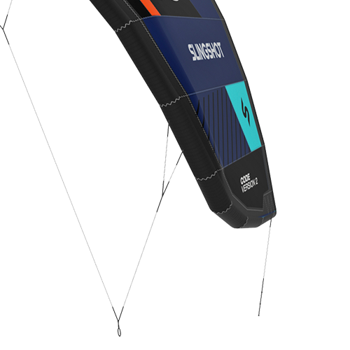 Das offene C-Canopy wurde mit dem Code V2 überarbeitet, um unser revolutionäres, verjüngtes Wing-Tip-Design zu integrieren. Dies ermöglicht es dem Kite, in einem größeren Windbereich mit höherer Drehgeschwindigkeit zu fliegen, was dem Fahrer hilft, höher zu springen, sicherer zu loopen und mehr Zeit auf dem Wasser zu verbringen.