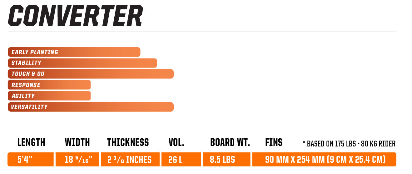 Das Converter basiert auf dem Angry Swallow und ist unsere absolut vielseitigste Ein-Board-Lösung mit einer Mastschiene für Foils und Klick-Inserts für FCS II Finnen. So kannst du dich mit dem gleichen Board ganz einfach zwischen Foilen und Wave Riding entscheiden. In der Welle erwartet dich ein bewährter Shape ohne Performance-Abstriche und beim Foilen feinstes Surf-Feeling. Ob du nun viel reist und keinen Platz für zwei Boards hast oder dir das Geld für ein extra Board sparen möchtest, der Converter punktet mit der idealen Balance aus Praktikabilität und Vielseitigkeit.