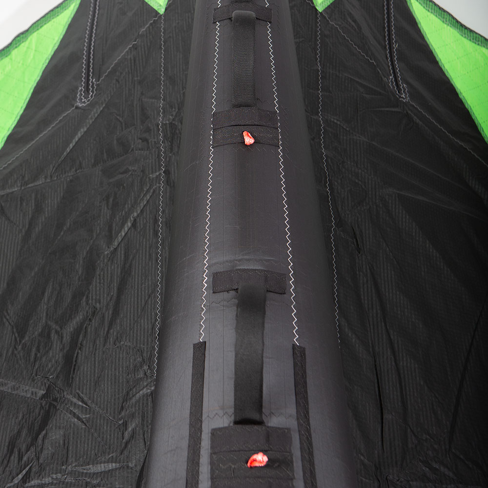 Diese spezielle Griffanordnung ermöglicht effektivere Am-Wind-Winkel, Sprünge mit mehr Power und sorgt zugleich für eine stabilere Formgebung, weil sie die Wingtips konstant heranzieht. Besonders bei starkem Wind ein relevanter Vorteil für den Komfort und die Kontrolle.