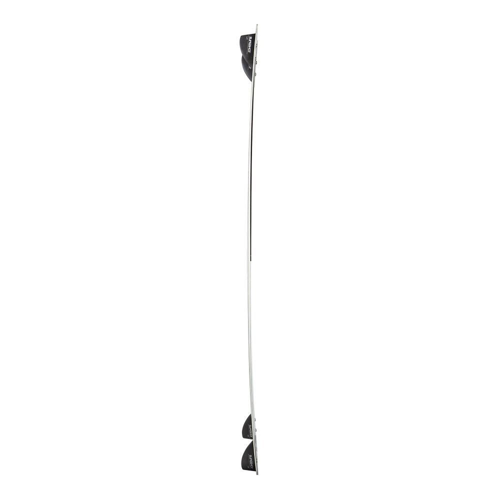 Die durchgehende Doppelkonkave sorgt für einzigartig hohen Fahrkomfort. Hart auf der Kante gefahren, kanalisiert sie den Wasserfluss und verhindert damit nicht nur Spritzwasser sondern garantiert auch eine sehr gute Laufruhe. Bei Landungen bricht sie die Spannung der Wasseroberfläche, was ein butterweiches Einsetzen des Boards ermöglicht. Ob aus drei oder aus 30 Metern Höhe.