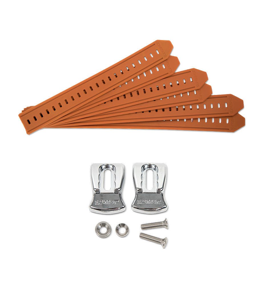 Endlich! Eine einfache und effektive Lösung für ein Problem, welches Wakeboarding Boots seit ihrer Erfindung begleitet. Slingshots neue „Gummi Straps“ sind Teiles eines revolutionären Schließsystem, welches extrem belastbares und straffes Thermoplastik Poly Urethan (TPU) für einen festen und perfekten Halt verwendet. Kein Lockern mit der Zeit, kein Klett und keine halbfesten Boots mehr. Gummi Straps dehnen sich beim Schließen und ziehen sich danach fest um den Boot. Gummi Straps können einfach ausgewechselt werden und jedes Paar Boots kommt zwei Sets austauschbarer Farben für einen individuellen Stil.