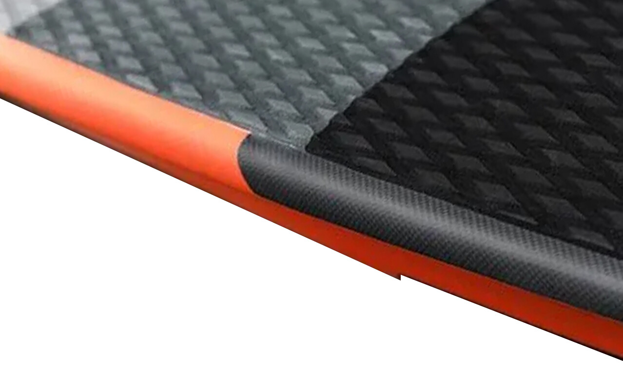 Die konsequent schräg in den Unterboden gezogenen Kantenbereiche sind ein typisches Merkmal unserer spezifischen Foilboards. Durch dieses Detail löst sich das Outwit leichter vom Wasser, um möglichst früh in den Flugzustand überzugehen, es verschneidet aber auch bei radikalen Turns in der Welle nicht so leicht.