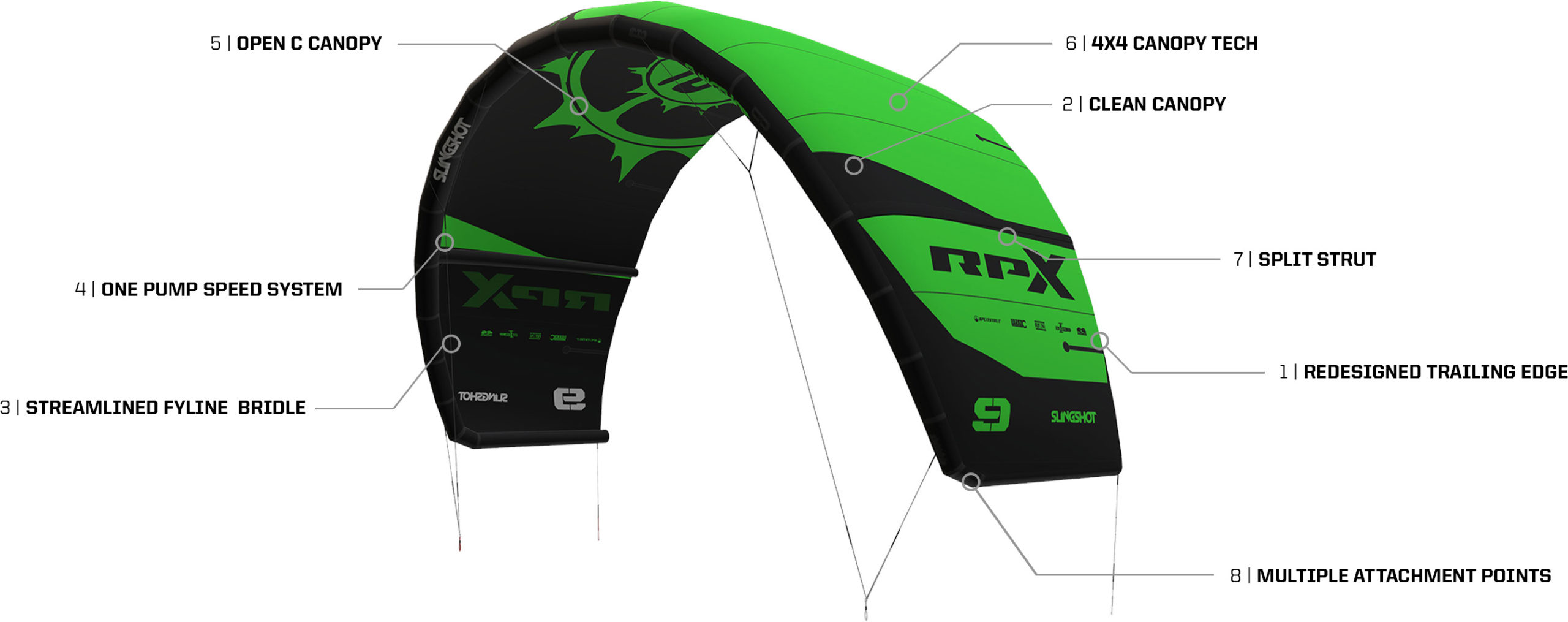 Verglichen mit dem RPM kommt beim RPX eine vollkommen neu entworfene Abströmkante zum Einsatz, was den Luftwiderstand und Turbulenzen verringert, sowie flatterndes Tuch verhindert. In der Praxis machen sich diese Effekte insbesondere durch einen verbesserten Response bemerkbar. Der RPX zieht bei Kiteloops schneller wieder nach oben, realisiert grundlegend einen geringeren Drehradius und sticht verglichen mit seinem Vorgänger durch eine noch schnellere Reaktion hervor.