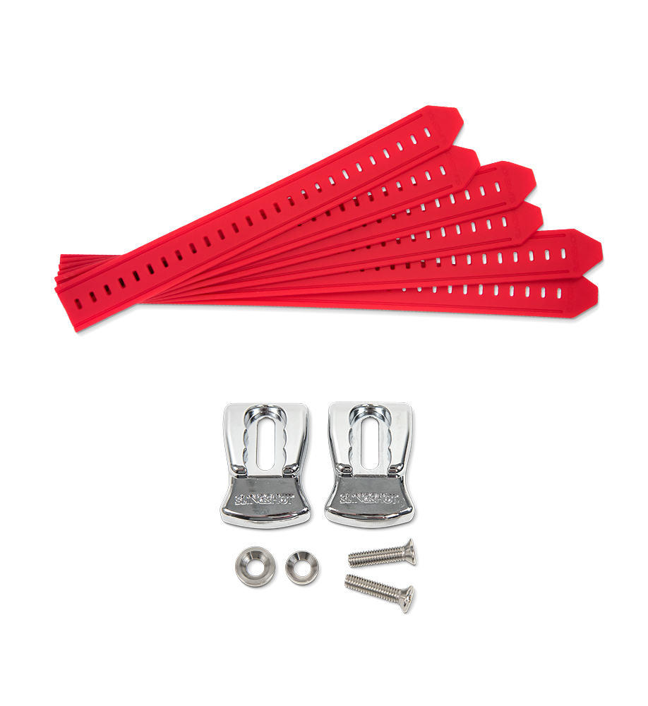Endlich! Eine einfache und effektive Lösung für ein Problem, welches Wakeboarding Boots seit ihrer Erfindung begleitet. Slingshots neue „Gummi Straps“ sind Teiles eines revolutionären Schließsystem, welches extrem belastbares und straffes Thermoplastik Poly Urethan (TPU) für einen festen und perfekten Halt verwendet. Kein Lockern mit der Zeit, kein Klett und keine halbfesten Boots mehr. Gummi Straps dehnen sich beim Schließen und ziehen sich danach fest um den Boot. Gummi Straps können einfach ausgewechselt werden und jedes Paar Boots kommt zwei Sets austauschbarer Farben für einen individuellen Stil.