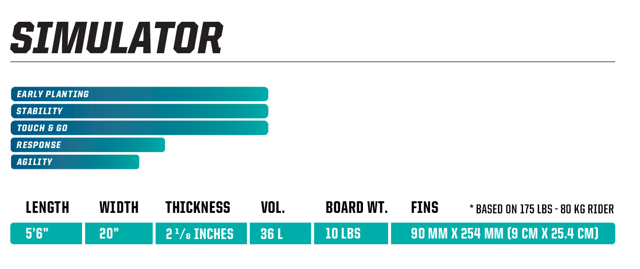 Eingepackt in eine dicke Schicht EVA-Schaum: Unser Simulator ist unser Einsteiger-Foilboard für sicheres und verletzungsfreies Lernen. Wenn ihr euch das erste Mal auf dem Foil versucht und die ersten Crashes hinter euch habt, werdet ihr schnell das fehlerverzeihende Fahrgefühl, das weich gepolsterte Deck und die Auftrieb gebenden Kanten schätzen lernen. Auch der lang gestreckte Shape und der insgesamt hohe Auftrieb sind von Vorteil bei den ersten Foil-Schritten. Wenn ihr es aber erst einmal in die Schwebephase geschafft habt, bleibt der Simulator ein spaßiges Freerideboard und Begleiter bei ersten Halsen- und Wenden, dem Toeside Riding oder ersten Sprüngen.
