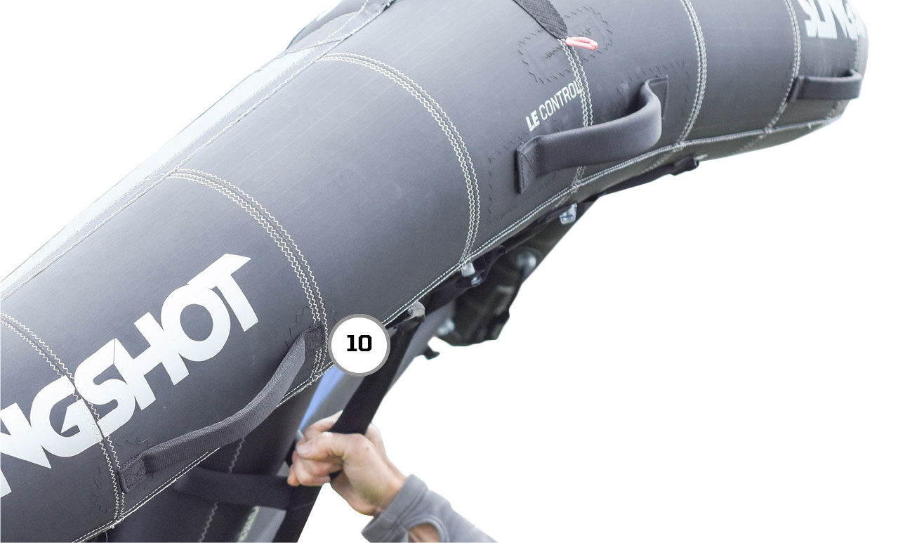 Vielfältige Griffpositionen entlang der Leading Edge und der Center Strut ermöglichen es dir, deine Hände stets optimal zu platzieren, um das Maximum an Performance aus dem Slingwing herauszukitzeln und eine absolut präzise Steuerung zu erhalten.