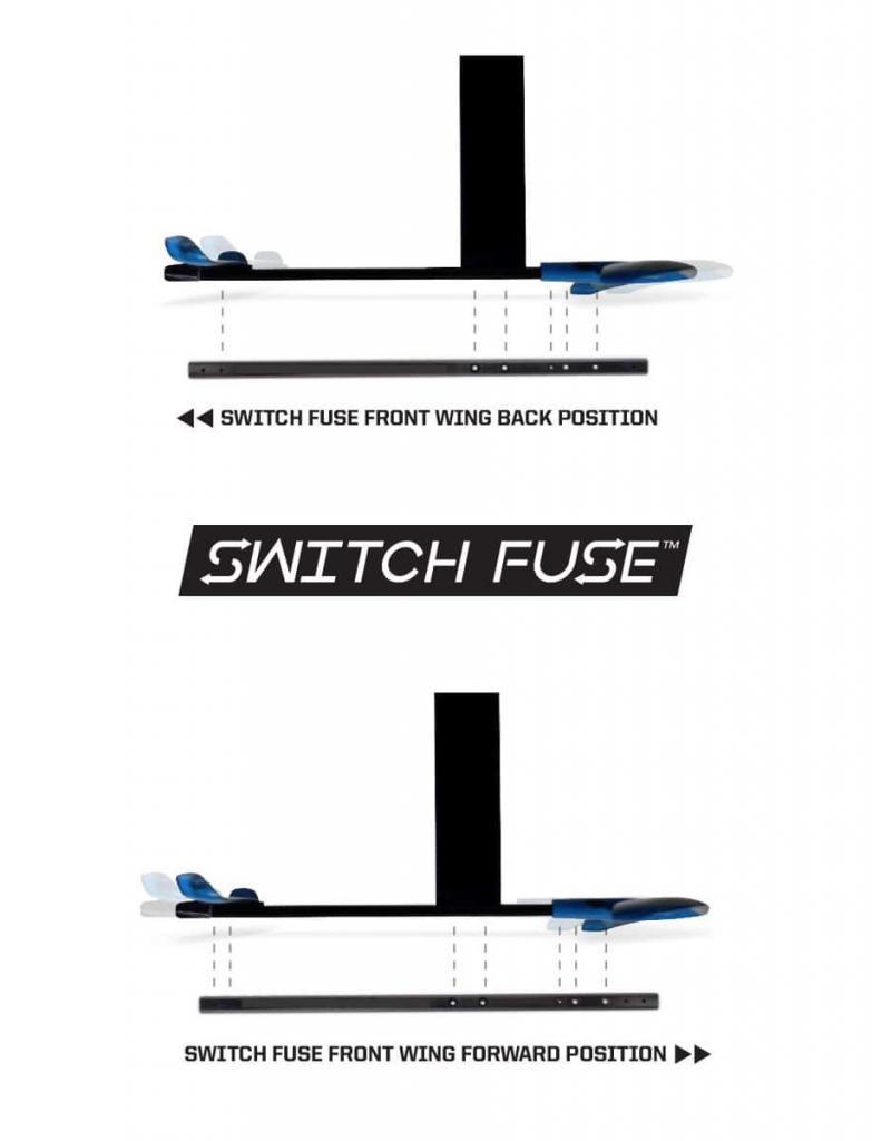 Passe dein Foil auf dich an. Die Switch Fuse ermöglicht dir 2 verschiedene Flügelpositionen. Die Flügel weiter vor oder zurück zu setzen bringt dir einen entscheidenden Vorteil beim Ausgleich des Riggs, sowie für die Balance deiner Fußposition. So kannst Du ein Board-Setup wählen was zu deinen persönlichen Vorlieben und deinem Fahrkönnen passt.